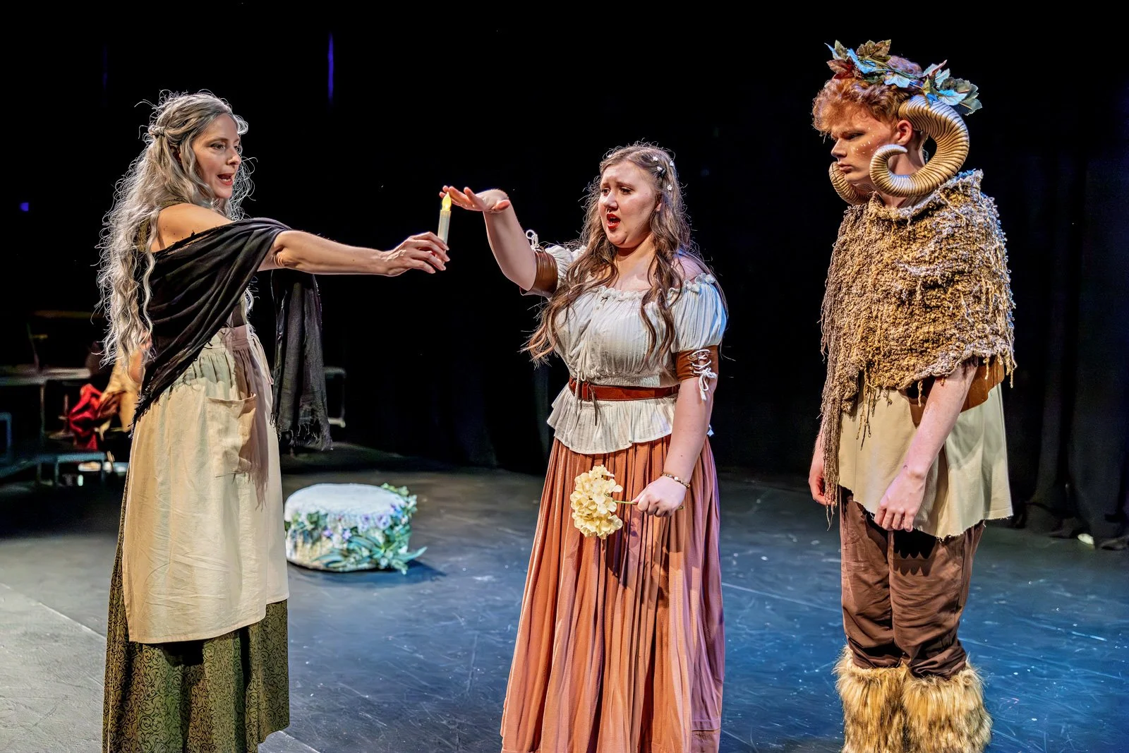 The Faithful Shepherdess, Lord Denney’s Players’ twelfth production, offers Columbus audiences a lively, absurd expansion of the Shakespearean tropes they know and love, such as young people’s obsessive sexuality and feeling (seen also in Romeo and Juliet) and the peculiar deus ex machina of a late work like Cymbeline. The premiere example of Jacobean tragicomedy, the play balances on a knife edge between genres while also offering such a robust satire of puritanical values that one reader has called it “American Pie set in the seventeenth century.”